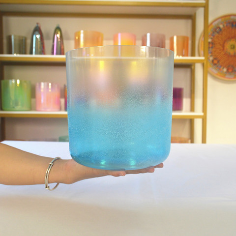 Cuencos Cantores de cristal curativo con sonido HF, venta al por mayor, cuenco de sonido de cristal degradado azul Pastel alquímico, instrumento de música, meditación